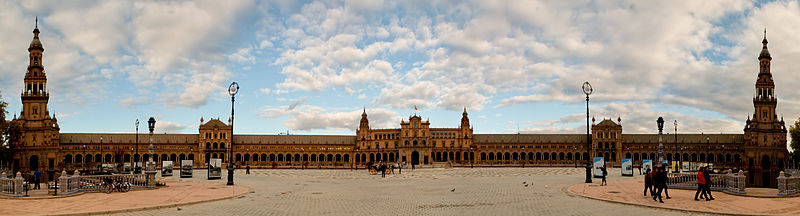 La Plaza de España es un conjunto arquitectónico enclavado en el parque de María Luisa de la ciudad de Sevilla (España). Fue realizado por el arquitecto Aníbal González. Se construyó entre 1914 y 1929 como el edificio principal, y el de mayor envergadura, de la Exposición Iberoamericana de 1929. Es el más grande de todos los que se levantaron en la ciudad durante todo el siglo XX, comparable a los otros dos edificios históricos destacados de los extramuros de la ciudad, que son el hospital de las Cinco Llagas (siglo XVI) y la Real Fábrica de Tabacos (siglo XVIII).